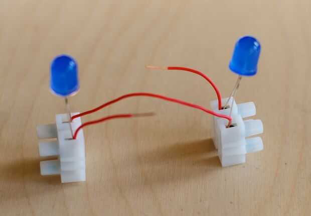 La + lado mi 10 mm LED no marcó. Usé una batería V 4,5 como probador de LED y marcado el plus-lado del LED, antes de montar en los conectores. Lo más de más de 10 m m LED se caracterizan por la longitud de los conductores, sin embargo: la plus-el plomo es un poco más largo que el cable de negativo.
