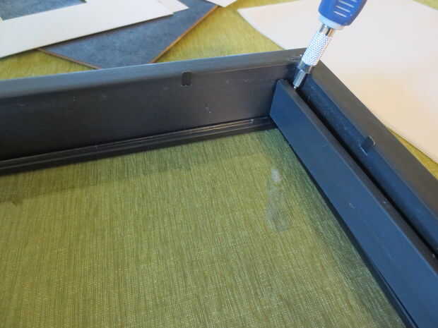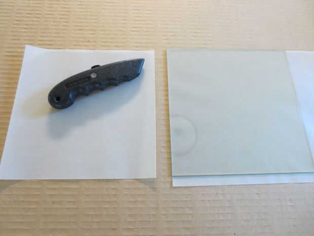 Comenzar a romper la caja para retirar el cristal. Esta particular caja tiene rieles de plástico fijados a los lados. Use un destornillador plano para sacarles suelta, luego quite los pines con unos alicates. Una vez que el vidrio es libre, usarlo como plantilla para cortar las hojas de vitela. Jugar con el número de hojas; la electrónica puede ser visible a través de una hoja, pero hojas adicionales atenuarán la luz. Elegí una hoja.