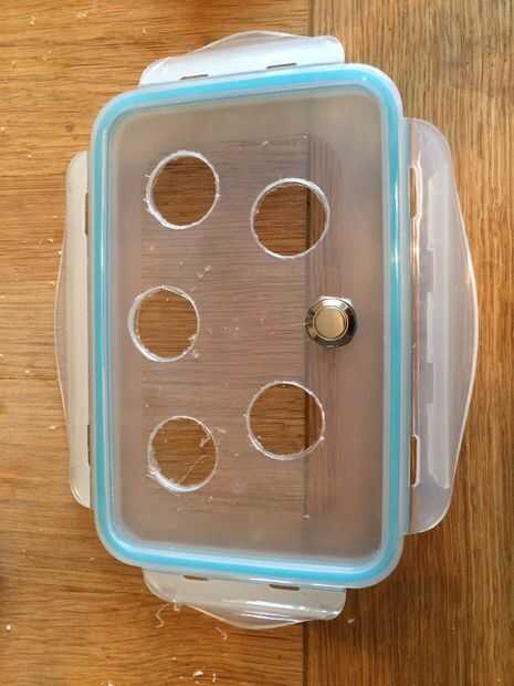 Después de algunas búsquedas más decidí ir a la solución de tecnología muy barata y baja y optó por una caja de tupperware!
