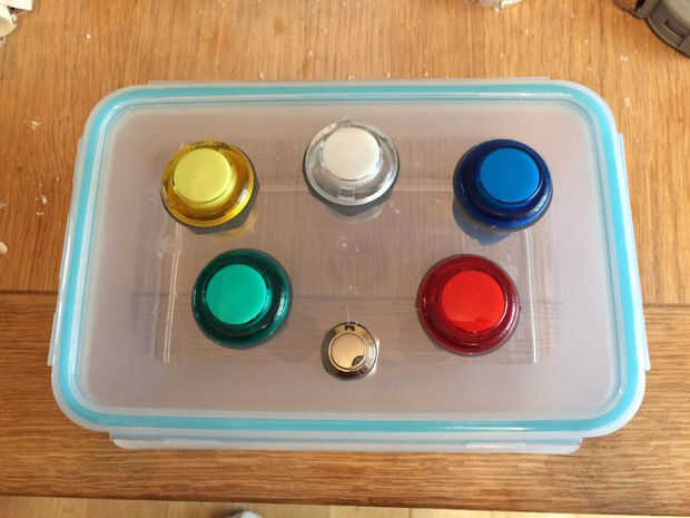 Luego me fui con cinco botones de colores para que los cambios de color principal un botón más pequeño de la astilla para la configuración de disco/patrón. Fui con un botón estilo diferente ya que no podía obtener el mismo estilo individualmente pero también pensé que parecía fresco y una sensación diferentes que sería buena para los chicos.
