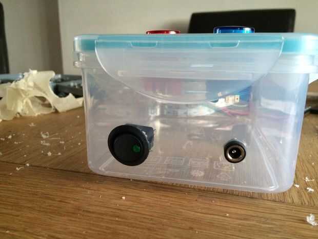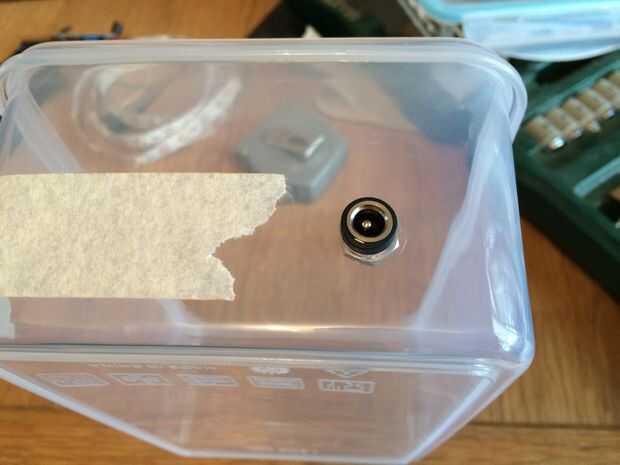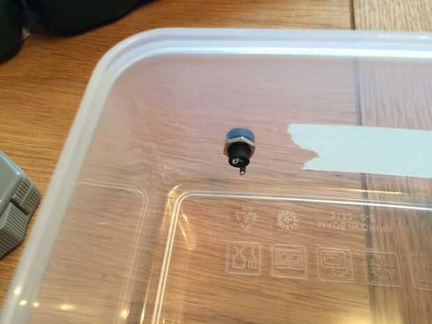 Utilicé un método similar a los agujeros en la tapa aunque el adaptador de la energía era lo suficientemente pequeño como para que un taladro normal bastado para crea los agujeros. El adaptador de alimentación era un buen ajuste pero lo hice con una tuerca para fijar a la espalda de todos modos que era bueno. El interruptor fue un pushfit era importand que el agujero no demasiado grande que no funciona bien, tuve que modificar manualmente el agujero para asegurar que las lengüetas podrían caber a través de. Aunque parecía bien al final.