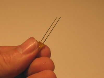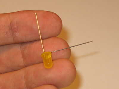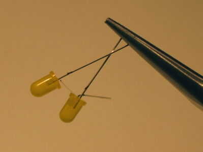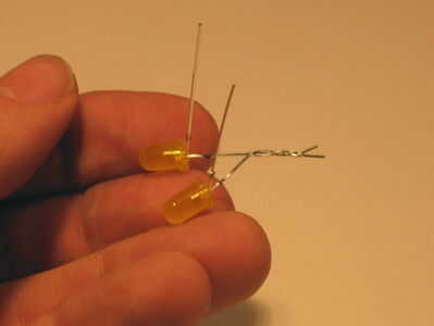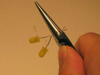 Doble ánodo en la base del LED para que sea 90 grados del cátodo. Repita para el otro LED.