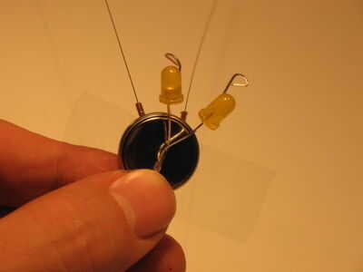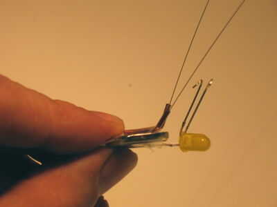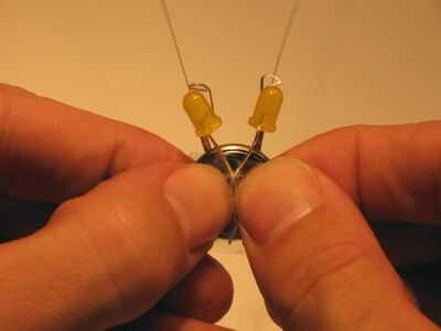 En este punto, el LED puede encenderse para arriba si la secuencia de la guitarra hace contacto con los ánodos de los LED. Por ahora, doble suavemente los ánodos fuera del camino.