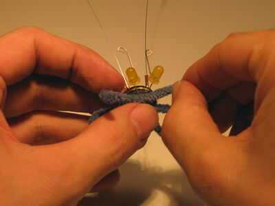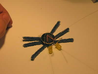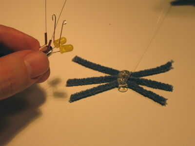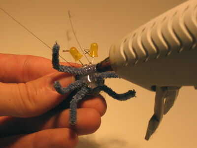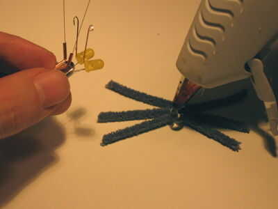 Tener el cuerpo de insecto montado a mano y deje caer una gota de pegamento en el punto central de las piernas. Yo soy bastante desordenado en estas fotos, como pegamento caliente es bastante indulgente. Pero puede ser cuidado de no dejar demasiado conseguir sobre la superficie de trabajo.