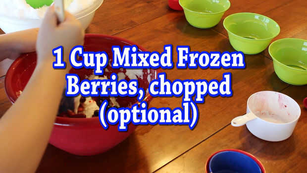 Añadir bayas congeladas, sprinkles, caramelo, chocolate etc., si lo desea.