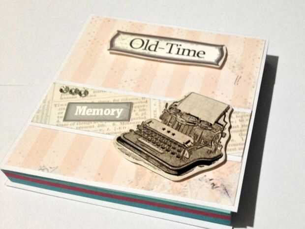 Pero si quieres casi lo mismo. Las medidas (rosas) mate 10 x 10 cm, las medidas de panel - blanco 3 x 10 cm, 2.5 x 10 cm de la capa. La máquina de escribir y un troquelado son elevados usando espuma adhesiva, y memoria troqueladas y pedrería se une con cinta de doble cara.