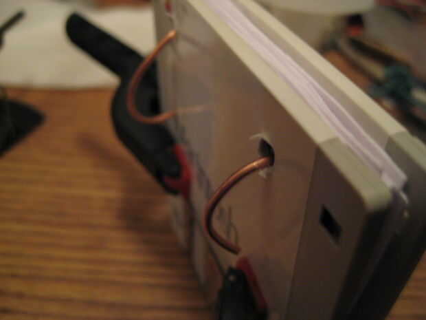 Doblar los cables en formas circulares, pero dejar el boquete lo suficientemente grande como para que usted puede ponerlos a través de los disquetes y el papel.