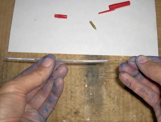 Los cuadros restantes en este conjunto implican mis esfuerzos para eliminar la tinta del tubo de plástico delgado que se muestra en la parte superior de la primera foto, y esto era tipo de sucio. Creo que el truco que mejor llevaba un delgado fajo de toalla de papel a través del tubo con un trozo de alambre de cobre AWG 20 sólido (fotos 4 y 5). También intenté colocar el extremo del tubo en mi boca y soplar aire a través de él, y que consiguió de la tinta hacia fuera. Pero en retrospectiva, creo que al empujar el taco de papel a través de él trabajó mejor.