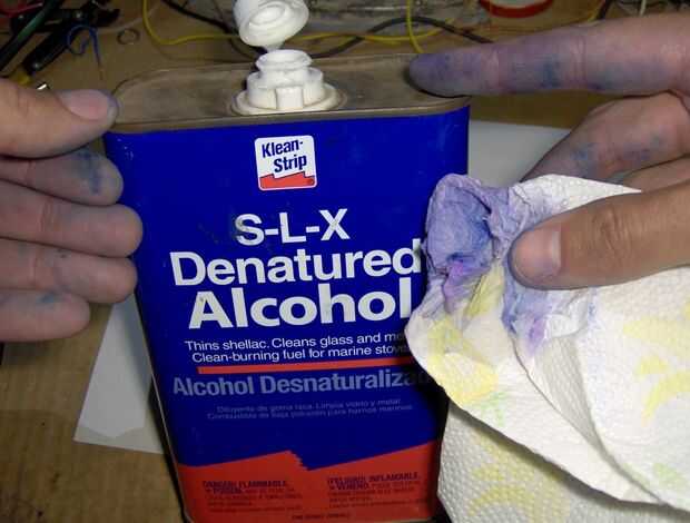Etanol (foto 6) hace un trabajo aceptable de limpieza de tinta de rotulador, y no se como tóxicos, o con olor fétido que huele como otros solventes.