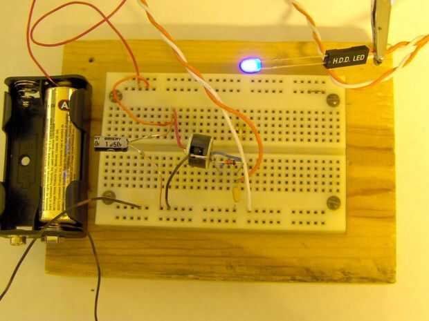Al obtener este módulo ejecutando de nuevo, usando esencialmente el mismo circuito es, en la linterna. Sólo esta vez el circuito está construido sobre una placa de prototipos. Esto se muestra en la segunda foto.