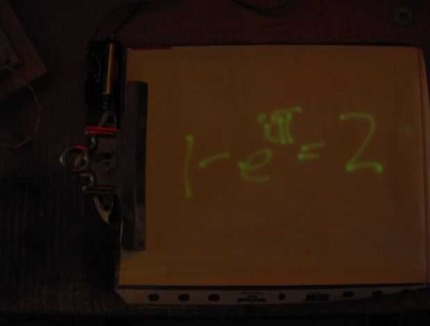 Dijo "simplemente" tomar una foto de ella, y casi es simple, casi. La cámara tiene que celebrarse aún utilizando un trípode. Yo también uso una fuente de luz roja inicialmente a la cámara obtener algo para su automática enfoque en. Tenga en cuenta que por razones anteriormente, luz roja no mata el doodle. Yo también uso la función de temporizador de cuenta atrás de la cámara para que mis manos son libres de doodle durante diez segundos o así.