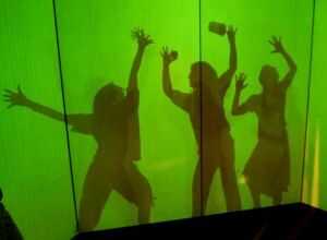 También digno de mencionar: si existe cerca donde vives, una institución que se hace llamar, "Museo de la ciencia", podría tener una oportunidad de experimentar una versión tamaño habitación del Bloc de notas fosforescentes. Museos de ciencia encanta pintar al menos una habitación con pintura fosforescente. Por ejemplo, el Exploratorium tiene tal una exposición.