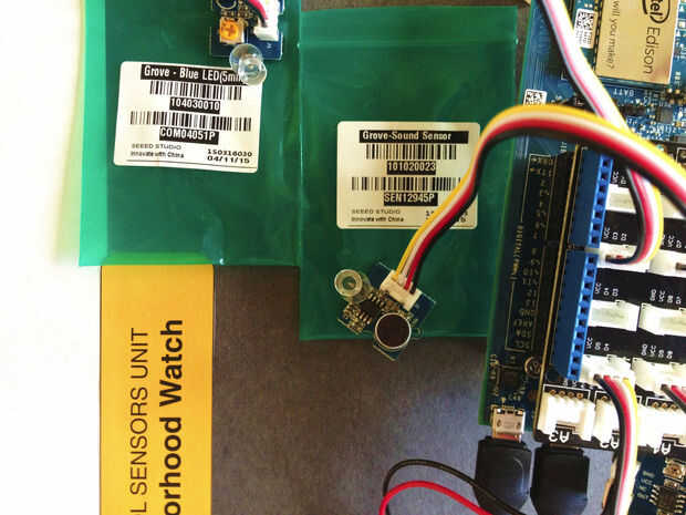 Para este proyecto necesitaremos varias tarjetas de Edison, Kits de arranque Arboleda y arboleda ambiental. Usted usará el Edison, protector, sensor de humedad, pantalla RGB LCD y sensores adicionales. y otros. Como se trata de una instalación al aire libre en la forma final, este Instructable presentación incluye un entorno de visual-diseño (simulado) en el que debe operar la matriz del sensor. Excluidos de la imagen se muestran imágenes del bloque del barrio (por privacidad), accesorios utilizados para sujetar el cableado externo, luces, sensores y el ordenador para ejecutar el XDK de IoT de Intel. Para completar la matriz final de sensores, también se requieren los siguientes sensores adicionales (Nota: no todos los necesarios sensores estaban disponibles en el momento de la presentación).
