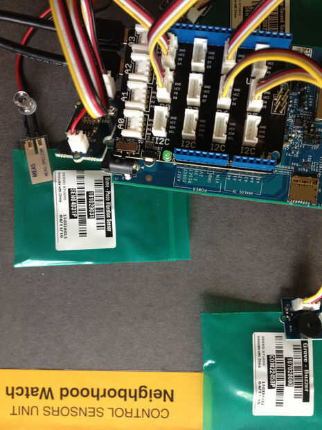 Las alertas de LED RGB LCD, sensores pueden conectarse directamente a la Junta. Usted tendrá que conectar los componentes restantes por separado según sea un entorno simulado o bloque real implementación. Aditamentos adicionales para proteger las unidades exteriores de los elementos será necesarios. No hace falta decirlo, debe seguir siendo invisible para los excesivamente curiosos niños (hecho para la seguridad de su barrio!). Algunos sensores muy cerca al nivel del suelo pueden recoger el polvo de la calle en sus superficies. También no sabemos cuánto pueden durar algunos sensores (por ejemplo, células de carga) con el uso constante.