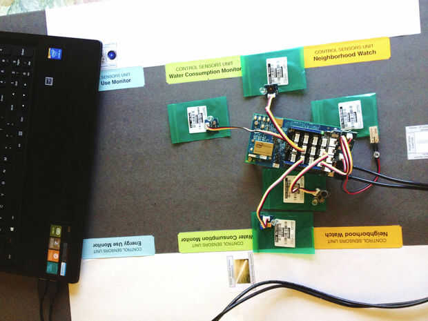 La «unidad» tiene una serie de sensores que monitorean las condiciones de terreno, estado de sistemas de riego de la yarda, así como datos generados a partir de agua y energía dispositivos de registro, combinados con datos externos publicados por agencias externas. Ahora se puede re-purposed para alertas de teléfono y texto relativos a residuos de agua, energía y agua consumo rendimiento promedio (benchmarking) y observaciones del movimiento del vehículo, así como la red de correo electrónico, que hemos creado para la vigilancia de la vecindad. La clave del éxito de este proyecto es un conjunto de perspectivas analíticas sobre patrones de consumo y conductas de barrio.