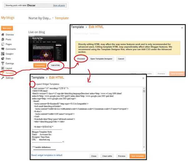 - Haga clic en el cuadro a "Expandir plantillas de Widget" en la esquina superior izquierda de la ventana HTML.