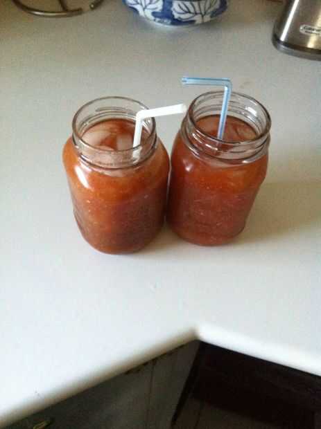 inyectar estos regordetes tomates cherry con un cóctel Bloody Mary. Mordedura en ellos y a llenar la boca con un chorro de jugos borracho.Heres una receta, ajustar a tu gusto:1 oz de Vodka de su elección2.5 oz jugo de tomatesalsa caliente 2 rojo1 cho