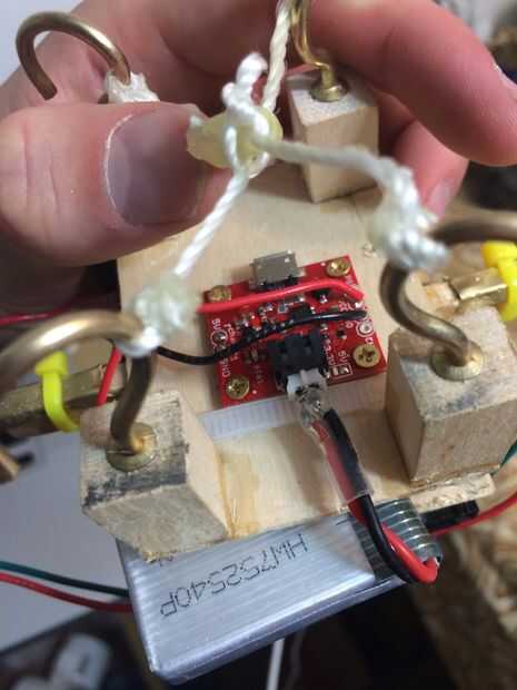 Estoy usando un Sparkfun Powercell LiPo cargador/aumentador de presión y una batería de LiPo de 500mAh para alimentar el dirigible.