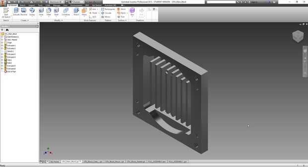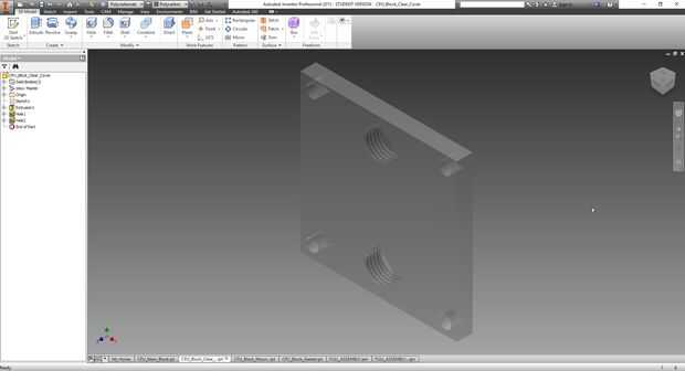 Yo utiliza Autodesk Inventor para crear un modelo 3D del bloque para determinar las dimensiones del bloque final y para generar el código g para CNC.