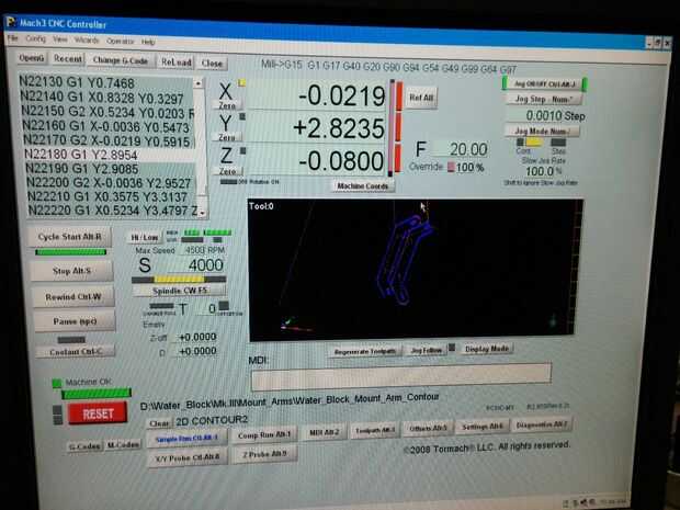 El cero para los brazos de montaje también está en la esquina inferior izquierda, al igual que el bloque principal. Una vez que los brazos se mecanizan rompí de sus lengüetas de retención y les presentó suave. Los agujeros de montaje para unir los brazos al bloque principal fueron luego avellanados para aceptar los tornillos 6-32.