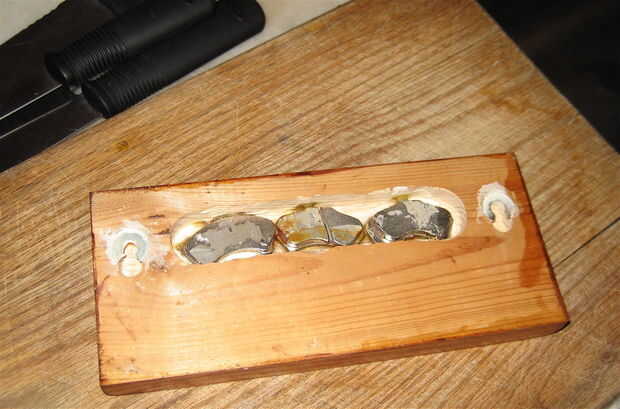 Colgué con 2 tornillos, los ganchos de cabeza de tornillo arandelas hasta que fui a ellos con una sierra para metales. Pegamento en su lugar. Consejo: use una hoja de papel contra la parte posterior del bloque y marca donde los tornillos deben ir, luego coloque el papel contra la pared y utilice un nivel para una vez.
