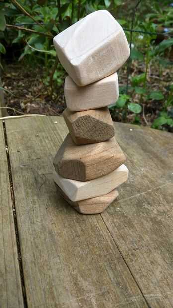 Hace años que me encontré con esta madera rock juego de apilamiento en un Starbucks (de todos los lugares). El juego fue en su tienda para una temporada de Navidad y nunca otra vez. El apilamiento de bloques fue divertido, relajante y un poco más educativo (porque, física!). El problema es que necesita mucho de estas rocas de madera para hacer cosas más interesantes como arcos. Solución: haga su propio!