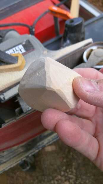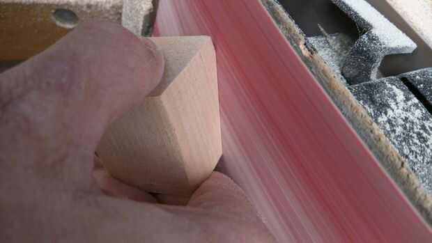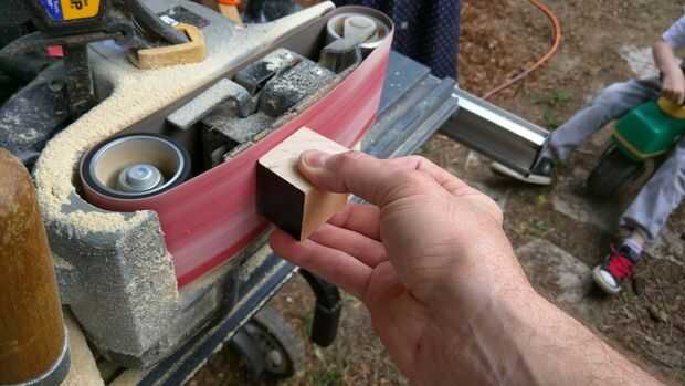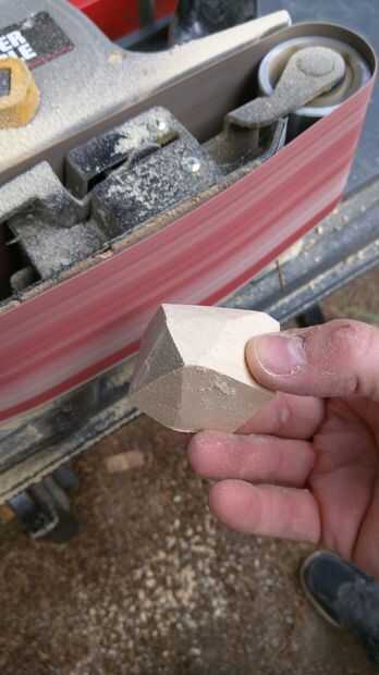 Las "facetas" es simplemente una cuestión de presiona el bloque en la correa. Una vez que tuve todas mis facetas corte he derribado todos los filos con la lijadora de banda y se trasladó a la siguiente pieza.