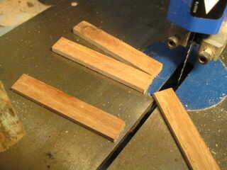 Clavos de acabado en el trozo de madera. Los espacio para que cuando las casas se montan sobre las uñas las casas no se toquen.
