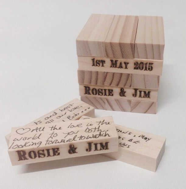 Hemos todos jugamos ese juego donde tienes que sacar un bloque de la torre sin derribar a todos... sí, sabes que. Libros de visitas son encantadores, pero la mayoría de las veces se recogen polvo después del gran día. Y un póster o impresión que todo el mundo firma también es precioso, pero ¿qué pasa si sus paredes son levantamiento ya con obras de arte? Este es un divertido y original alternativa, un juego que puedes jugar en años venideros, tal vez con los hijos de su matrimonio. Como quitar cada bloque puede leer los deseos bien otra vez, recuerdan ese día tan especial rodeado de seres queridos y compartan la alegría y los recuerdos de nuevo!