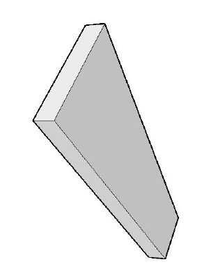 Los cinco pedazos están en la forma de un trapecio alargado. Las dimensiones largo son 10 1/2 pulgadas. El extremo más largo es de cinco pulgadas. El extremo más corto es de dos pulgadas.