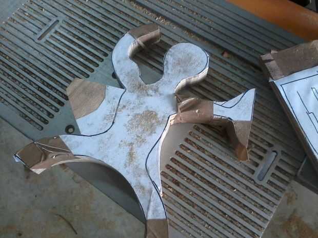Ahora el plan original era cortar alrededor de las cabezas / penacho y las clavijas en los pies y el escudo brazo primero, luego unir las tres piezas de contrachapado y cortan el resto por lo que fueron todos exactamente el mismo.