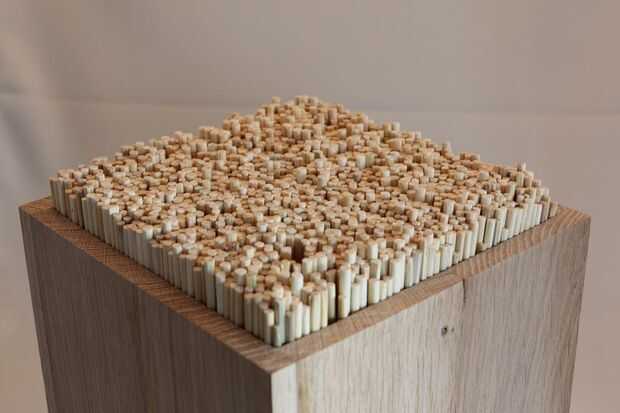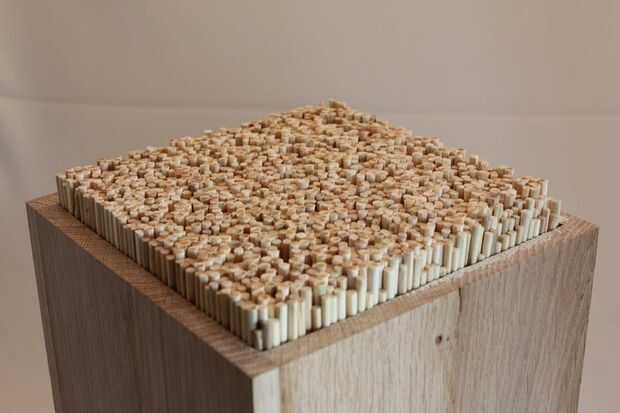Debido a la pieza extra de madera, pegarán los palillos hacia fuera, y los que más se sobresalen más.