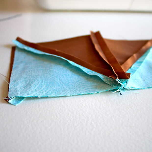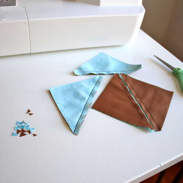 5. Recortar las esquinas de las plazas que ha creado juntos dos triángulos coser!