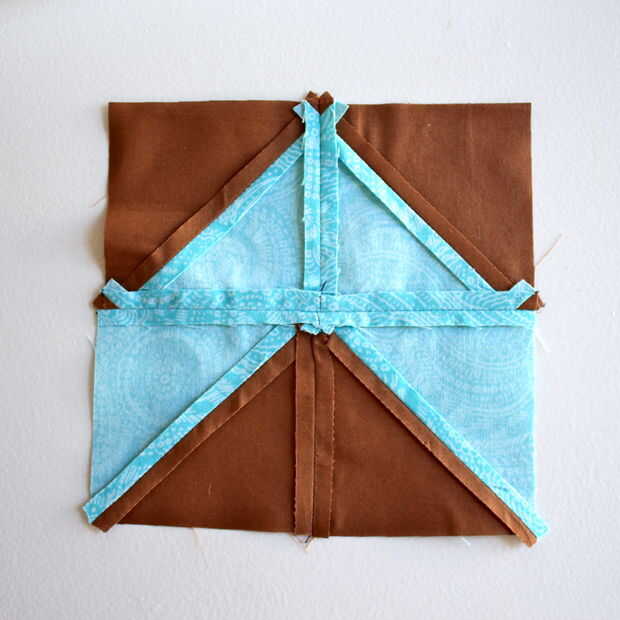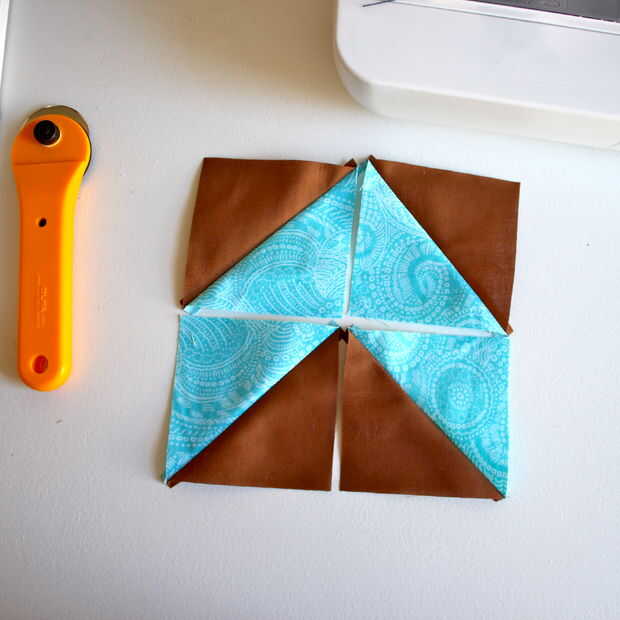 Paso 3: armar el bloque de cuatro cuadrados chevron