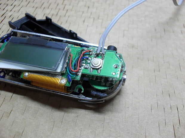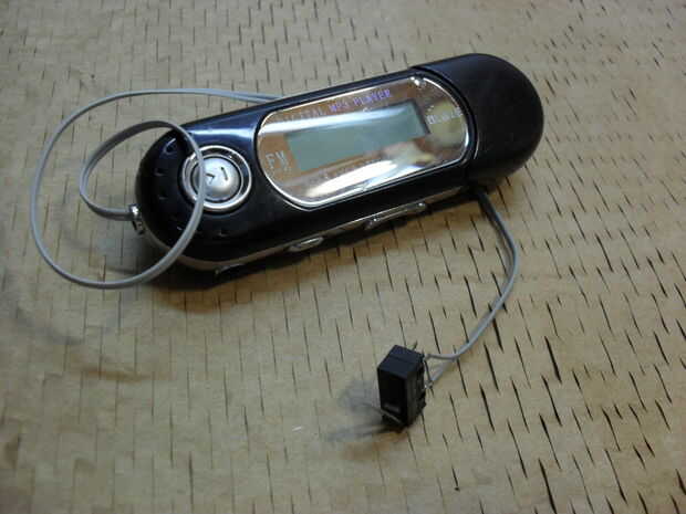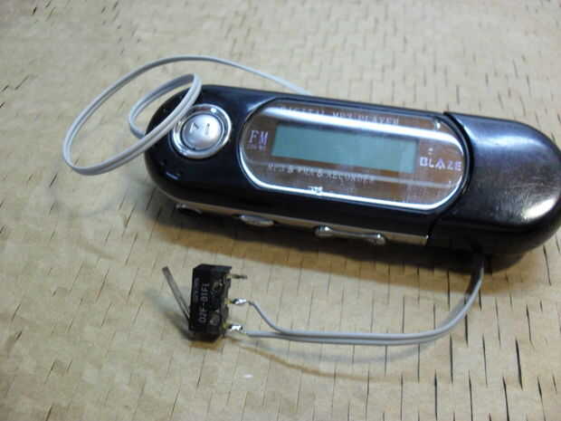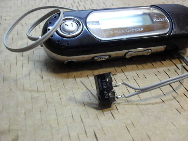 Paso fácil, abrir su reproductor de mp3 y encontrar el botón de play, soldar dos cables a la misma y luego soldar un interruptor a este los cables, con el fin de hacer una extensión del botón de play.