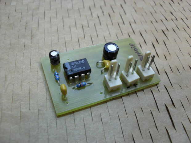 El segundo es un amplificador. Se utiliza para escuchar el reproductor de mp3 sonido en un parlante común. Los dos tableros trabajan a 4,8 voltios de las baterías recargables.