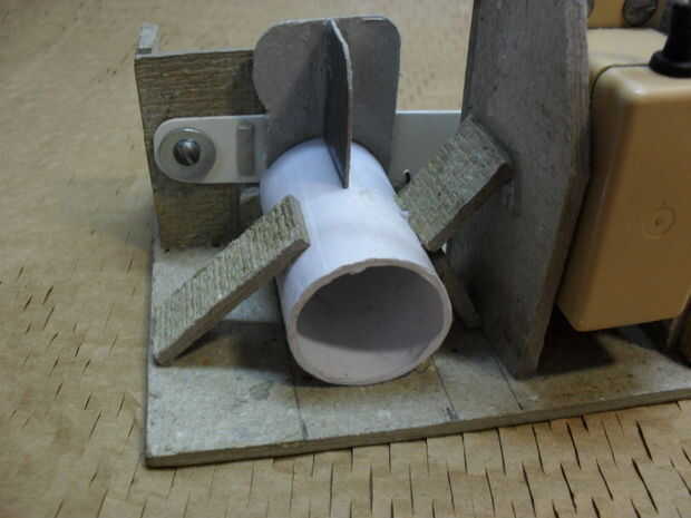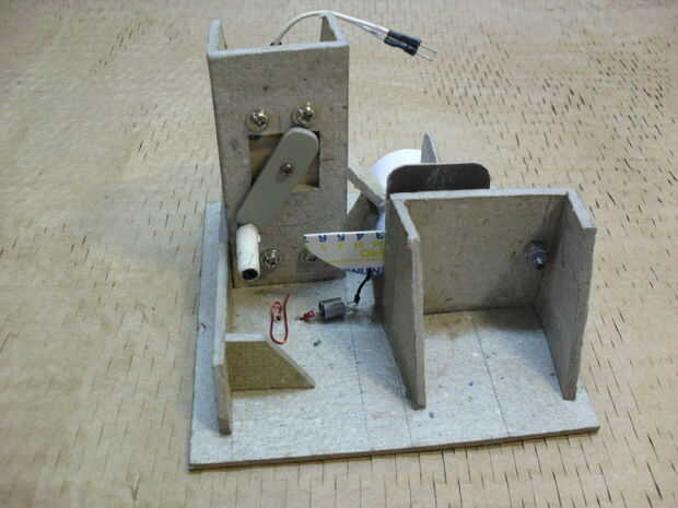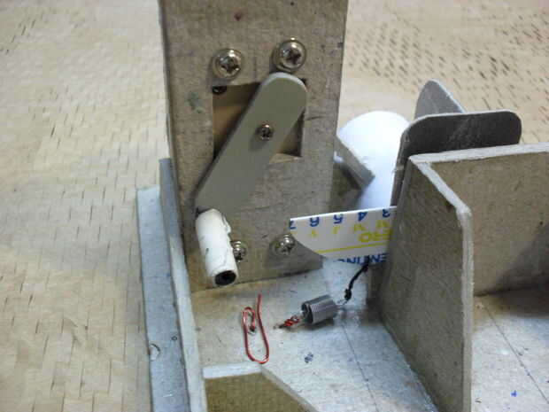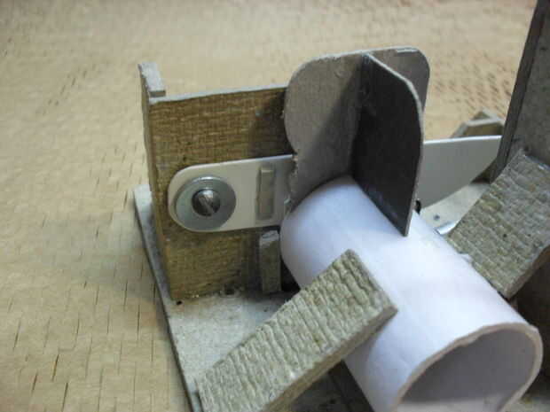 Pegar el tubo de las monedas frente al agujero y fíjela con algunos trozos de cartón. Ahora puede probar si todo se va a trabajar.