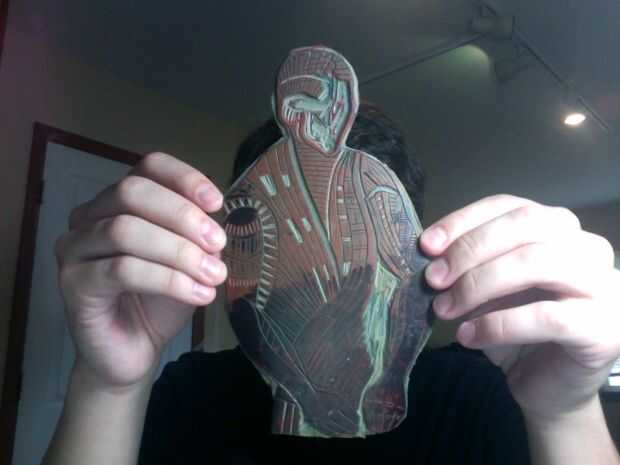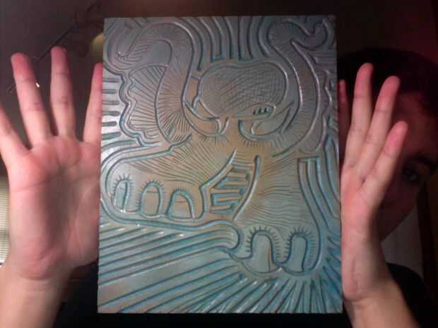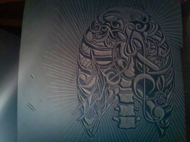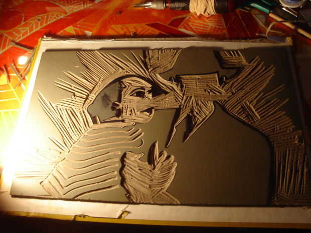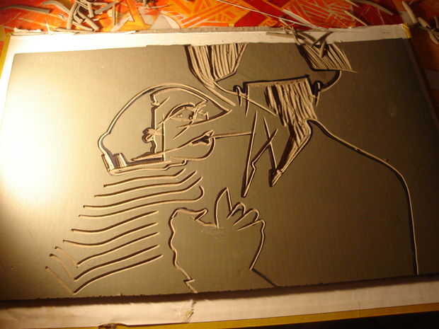 Esto es cuando la manta entra en juego. Coloque una toalla sobre el área de trabajo y luego poner la manta en una posición muy baja. Ponga otra toalla en la parte superior y tapa el bloque hacia abajo así que usted puede calentar el linóleo para que sea más fácil de cortar si no calentar el bloque el linóleo se escama y sus líneas no será precisa.