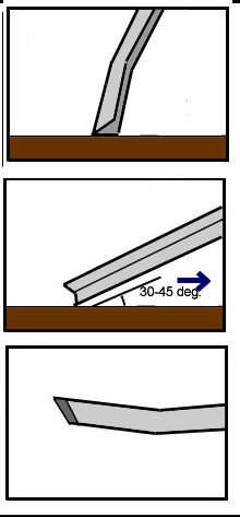 Comienza a afilar la hoja de dibujo en una sola dirección a lo largo de la piedra. Tienes que mantenerlo en un ángulo dependiendo del borde después de 30-45 grados (esto es preferencia personal - algunos como un ángulo más agudo). Mantenga todo el ancho de la punta en contacto con la piedra para obtener un borde incluso.