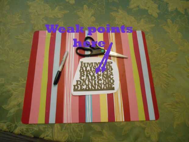 Usando un rotulador y un par de tijeras para cortar la plantilla más o menos, como en la imagen y utilice un rotulador para retocar la plantilla. Ahora esta parte es importante. Si usted está rozando con el principio de mi instructible Lea esta parte. ¿Una vez que termine su "bloque de nombre" sería realmente malo que su proyecto encajado en la mitad derecha? Así que en este momento mirar cuidadosamente sobre su plantilla buscando los puntos débiles. Un punto débil será un espacio hacia abajo de la mitad de donde las letras no se tocan. Ver la segunda imagen para una ayuda visual. Para fijar estos puntos débiles encuentran un lugar indescriptible para conectar dos letras a través de la brecha. Si eres como yo ir pedir a alguien que sabe acerca de cómo hacer que algo parezca agradable.