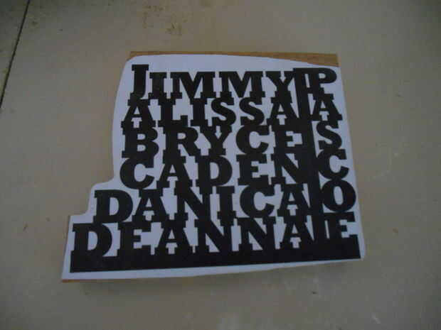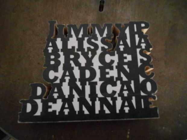 Usé dos tipos de hojas en la Sierra de calar: hoja plana normal y una hoja de duchman vuelo. La hoja duchman vuelo realmente puede cortar en cualquier dirección, opuesta a la hoja normal que sólo puede cortar en una sola dirección. Se pueden comprar aquí. Usé la hoja normal para las líneas rectas largas y el duchman para todo lo demás. No es necesario flying duchman cuchillas, pero ayudan mucho. Rápidamente cortar el bloque de nombre (ver foto 1) y luego más cuidadosamente corte alrededor del perímetro (ver figura 2).
