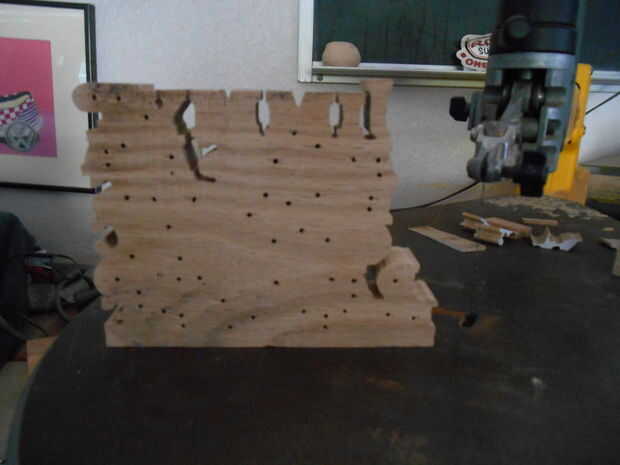 Así que primero debe encontrar el pedacito más pequeño posible que puede pegar la hoja a través de. Entonces, en todas partes hay un espacio en blanco en la plantilla, taladre un orificio. Si eso es confuso mirar las fotos. Hablando de fotos, la primera es algo borrosa, lo siento sobre eso. :-)