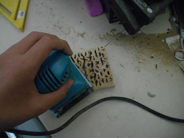 Así después de haber cortado la cosa entera, que su lijadora y arena de todo el papel y el pegamento hasta que es sólo madera y luce genial. Después de que la arena, todos estos fragmentos de papel asqueroso y pegajoso aserrín se caerán en los boquetes entre las letras. Yo solía recoger cuidadosamente todos los grumos y luego soplar sobre él, pero hoy que me enteré que el shop-vac (que cualquier carpintero precie) funciona mucho mejor, más rápido y es mucho más divertido de usar que un palillo de dientes. Una vez que haya terminado de limpiar, tomar unas cuantas fotos, haga clic en el botón "Hice" en la parte inferior de la instructible y como él. También se puede demostrar a amigos, familia y su perro. Por favor como, comentario, y cargar a la gente cuando me preguntan que hacer uno para ellos.