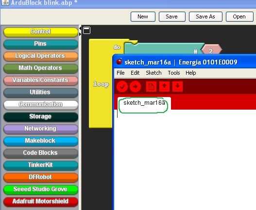 Ardublock crea un bosquejo de Energia llamado sketch_ * con el nombre fecha.