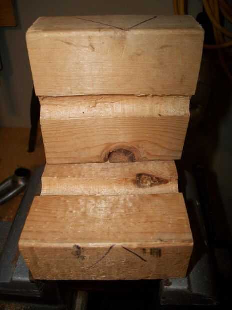 después de que el bloque ha sido perforado (aburrido) que se verá así. Esto es donde el cañón se ajusta a cuando usted la abrazadera en el tornillo de banco. El último paso es para el canal de madera con cinta de fricción para que la madera no dañar el acabado del arma y también para dar una mordida al metal para evitar que resbale.