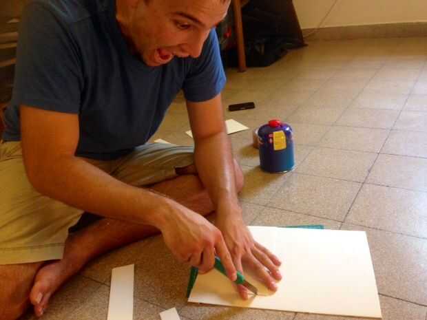 Mi amigo y yo subió con esta idea de un dispositivo de bloqueo de viento plegable para nuestro campamento quemador, que generalmente utilizamos para hacer el café. Lo encontramos muy útil cuando se trata de encenderse el fuego, y también mantiene el calor del movimiento con el viento que significa punto de ebullición más rápidamente y de una forma más eficiente de utilizar nuestra finita cantidad de gas.