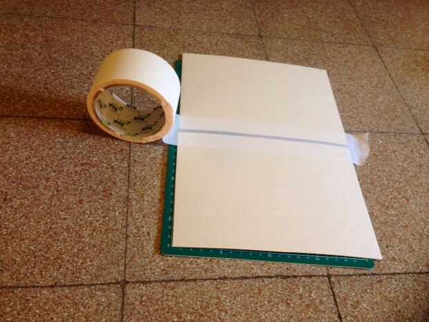 4. voltear la cartulina y se coloca otra tira de cinta adhesiva para conductos utilizando exactamente el mismo método.