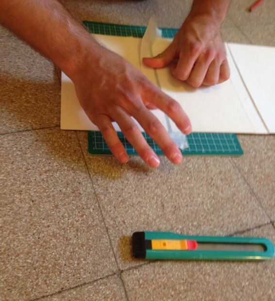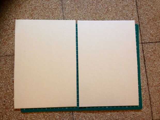 1. colocar 2 trozos de cartón encima de la almohadilla de corte 0,5 cm de separación - Asegúrese de que la distancia es incluso de inferior a superior. (Fig. 1)
