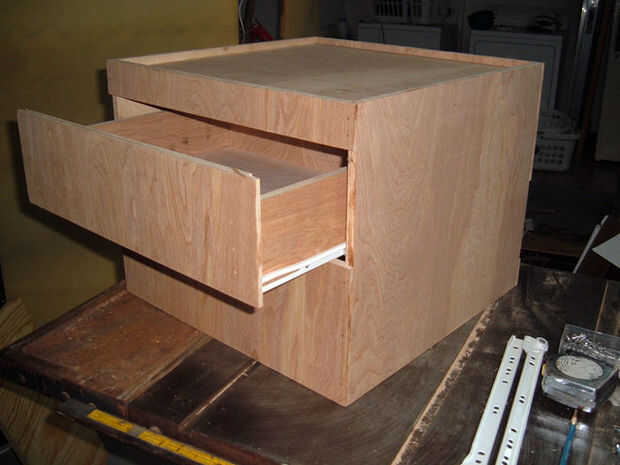 Ahora, ponga los mandos en el cajón y ponerlos en la mesa. Asegúrese de que los cajones están trabajando correctamente, y que tienen el cajón derecho en el orificio del lado derecho si el grano de madera se supone que la línea para arriba.