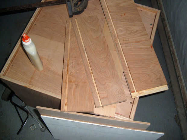 Ejecutar las dos piezas de 4" de ancho a través de la sierra. A continuación, tome el 5 1/2" frentes de los cajones que se corte el con el borde inferior contra la guía. Asegúrese de que haces esto si desea que el grano de madera alineado con el resto de la tabla. Después de que se acaben todas las piezas, mueva la guía 1/8" de la hoja y vuelva a ejecutar. Esto hará que la ranura de 1/4" de ancho por lo que cabe en la parte inferior.